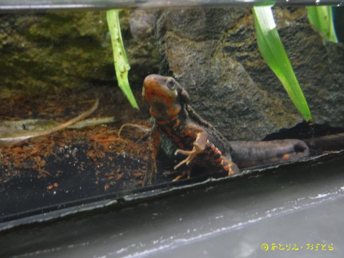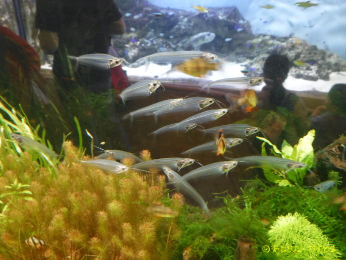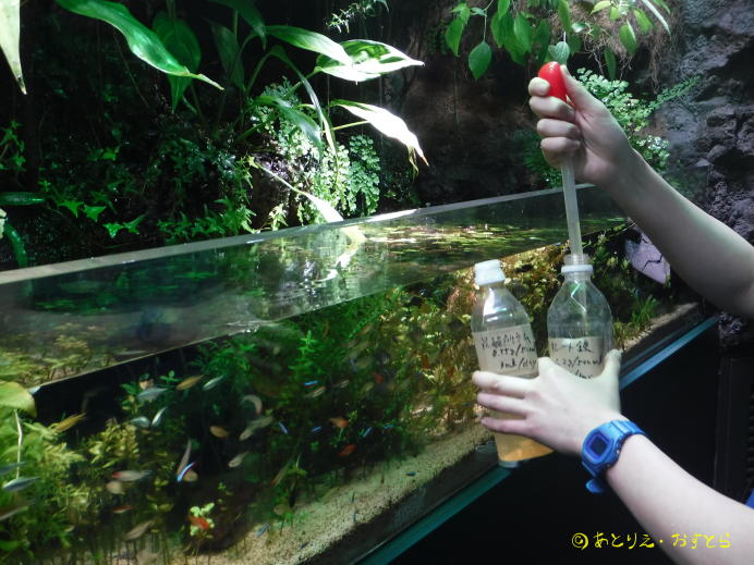 ↓室内の淡水水槽では、飼育員さんが水草の栄養剤をあげていました。