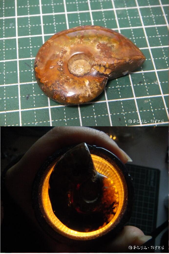 電灯で照らすと、内部構造が透けて見えます。